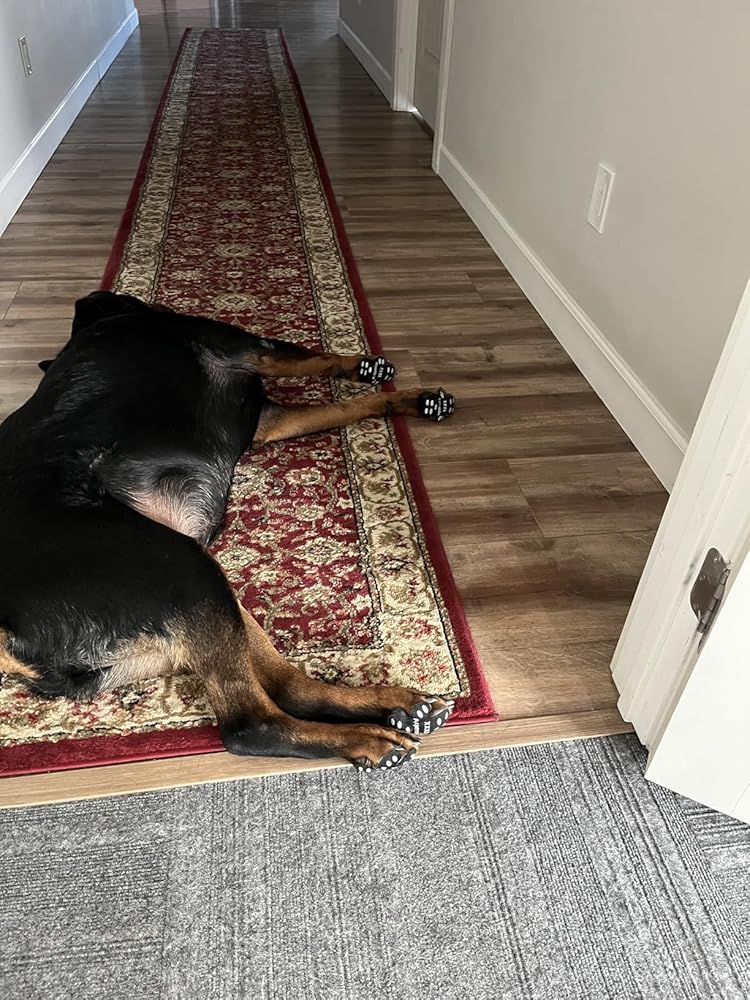 The change it made in my 12-yr-old corgi with a compromised spine was amazing!! He started trotting around immediately on vinyl and hardwood floors when before his legs would just slide out from under him. I almost cried I was so happy!!However… the other reviews I’ve seen are also accurate that they don’t last more than a few days before needing replacement, especially after a walk on wet grass. Also, It helps a LOT to cut them to fit the toes, especially for pups with furry paws (see photo). My advice? For the price, just go for it. They do help!