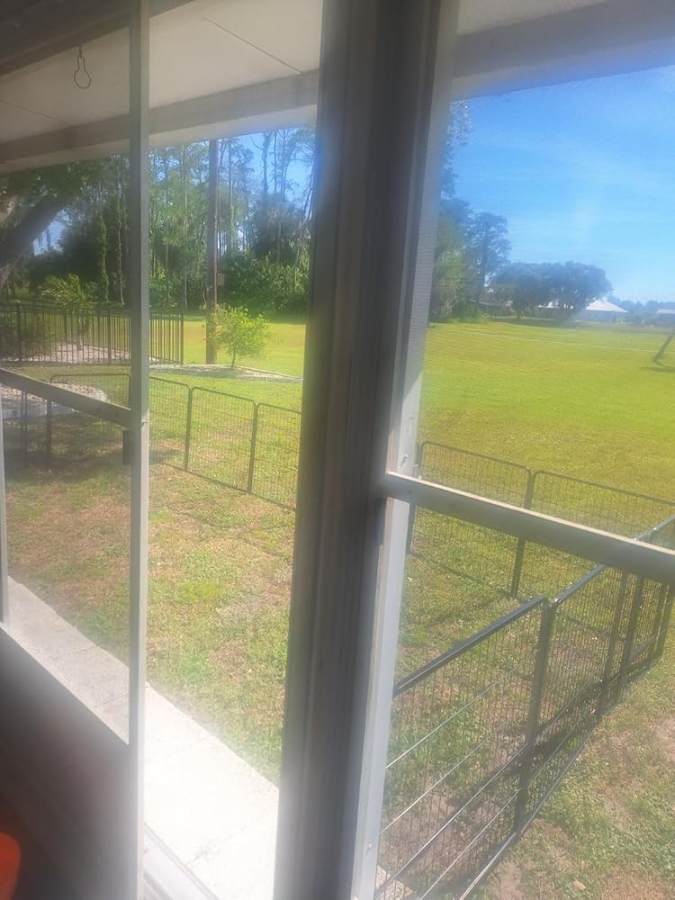 I should have gotten this a long time ago, no more chaining him up to go out. Added this on to our Lanai (12 Panels) and it looks great. Pic of the stake showing entry and mid-level after it goes deep into, the ground. This is very sturdy our dog loves having this freedom. 12 panels using our screen is perfect for 1-2 dogs in my opinion. This came a day early, my husband and I set this up 15 minutes.