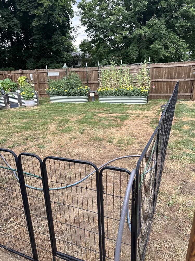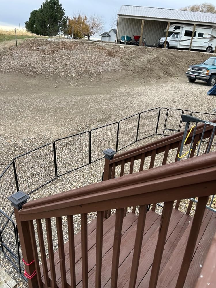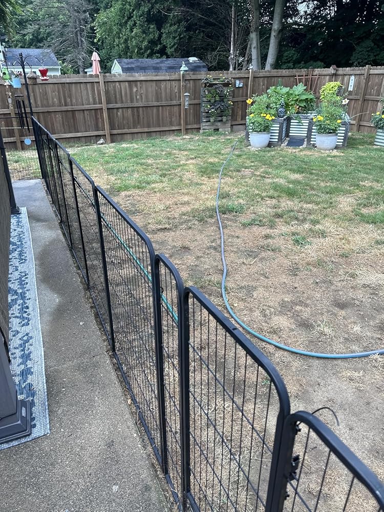 We’ve had an issue with our dogs and our neighbor dogs fighting through our privacy fence. We bought this fence to partition off a section of our backyard where the dogs will not be allowed to “meet”. This fence was incredibly easy to install and looks great. We purchased trampoline stakes as well for durability and have had zero issues. 4 stars as the color is already starting to oxidize outside, but otherwise a great product.