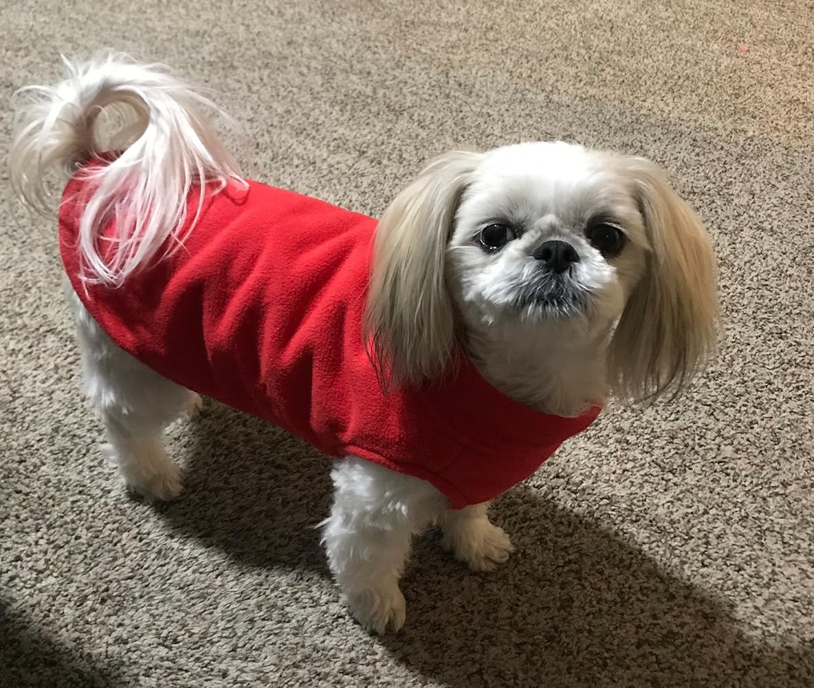 Medium fits my 19 lbs. Shih Tzu with 19" chest well, not too snug. The fleece is not too thin. Can add a jacket for winter temperature.