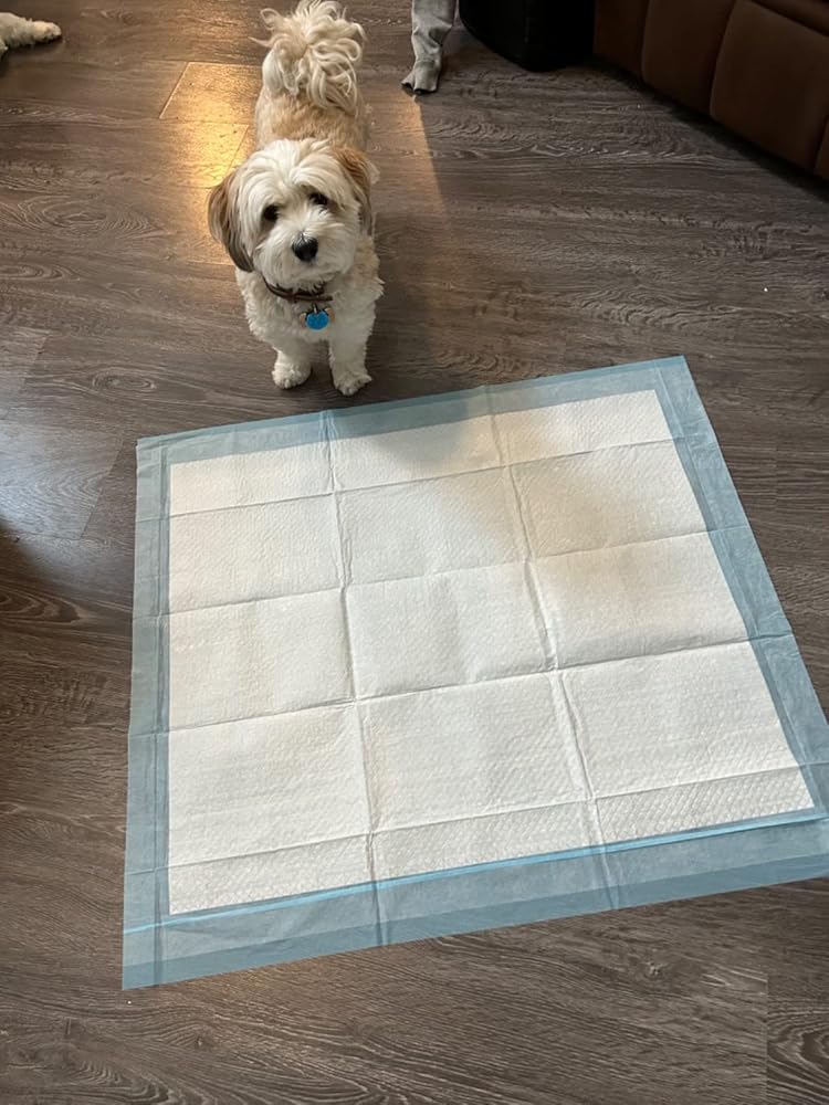 I am happy to have these Pee pads for my dogs. The P pads are so much bigger than the pads that I have. I am using these Pee pad at night, for bedtime. Sometimes the dogs have to pee a little bit more throughout the night and when I wake up in the morning …sometimes I wake up to a mess ,so the larger pee pads have come in handy….