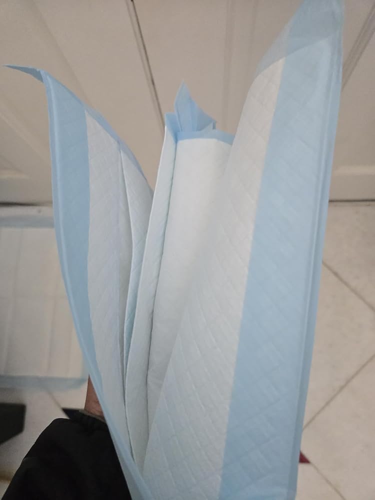 At first I thought these pads were going to be too thin to be useful, but surprisingly, they worked pretty well. They took about 1.5 cups of water and absorbed it fine and kept the back side from getting wet. The top, though, does leave a gel like film on the surface, so if it's touching skin, it'll leave a little residue.I'm using this for a little liner, so they work fine for me. For human use, I'm not so sure given the residue on the top surface after it's wet.