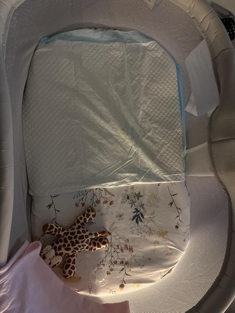 I use these for changing my newborn so that I can keep her sheets clean during the day & night. They are durable and super absorbent rarely seeping through. They are soft enough to lay in the bassinet however, I fold it in half so that she can rest her head on her soft sheets. If left unfolded it takes up the full space of my Halo swivel bassinet. So it’s a great size if baby needs to wee or number two I know it will catch. Pad is white and easily determines if it’s been soiled and needs to be changed. These are of great convenience to our little family.