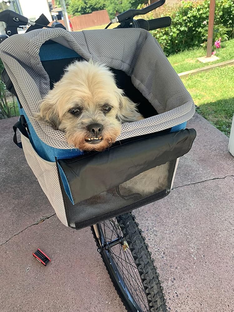 Awesome product. Easy to install on bike and fit my 16lb dog and she’s a little scared of carriers but didn’t mind this one. The only thing is that it kinda folds in in itself but works great still